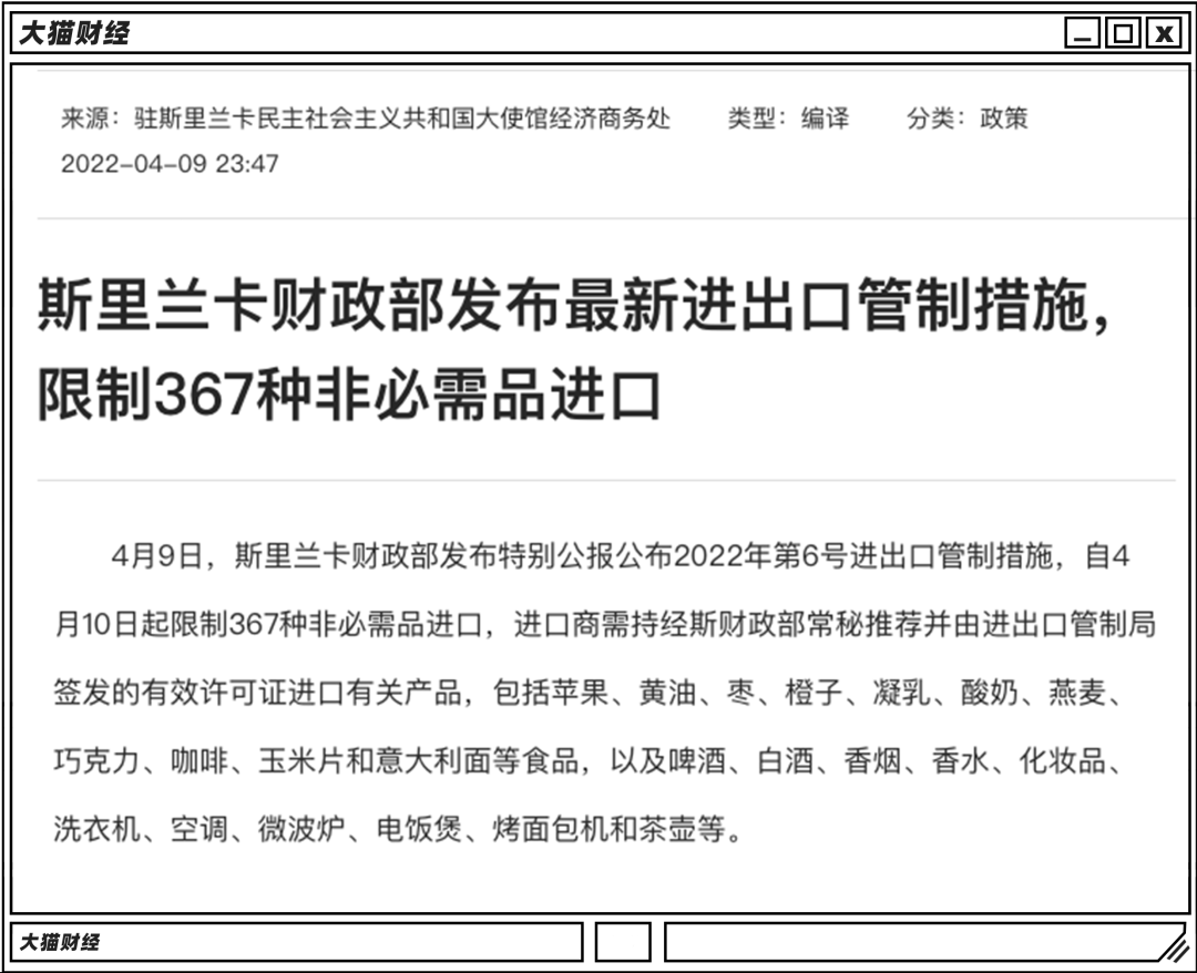 2019年底的时候,斯里兰卡的账上还有79亿美元的外汇储备,到了今年4月初,外汇储备降到了23.1亿美元;等到了5月4日,外汇储备又降到了17亿。