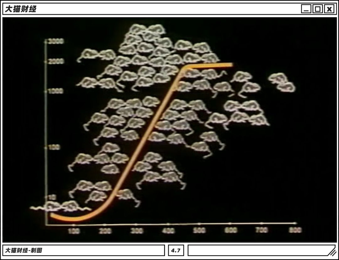不过,300天后,25号宇宙总数的增长非常乏力,从55天翻倍减缓到145天翻倍,生育率下滑严重,而且,在总量达到2200只之后,居然开始走下坡路了。离这个乌托邦能容纳的总量还差得很远。
