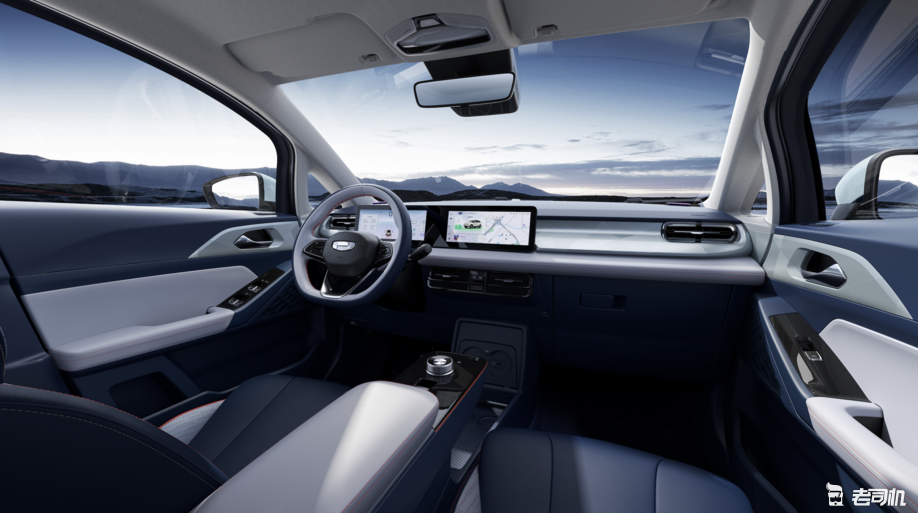 进入车内,几何E使用了极简设计风格,中控台富有层次又使用撞色搭配,加上10.25英寸的全液晶仪表+中控屏组成的贯穿屏幕,看上去更有科技范儿。
