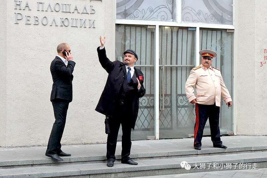 他旁边还站着热情洋溢、摆着经典演讲姿势的“列宁”!
