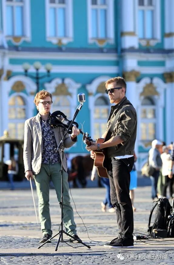 冬宫广场上,一个小乐队正在演唱流行歌曲。
