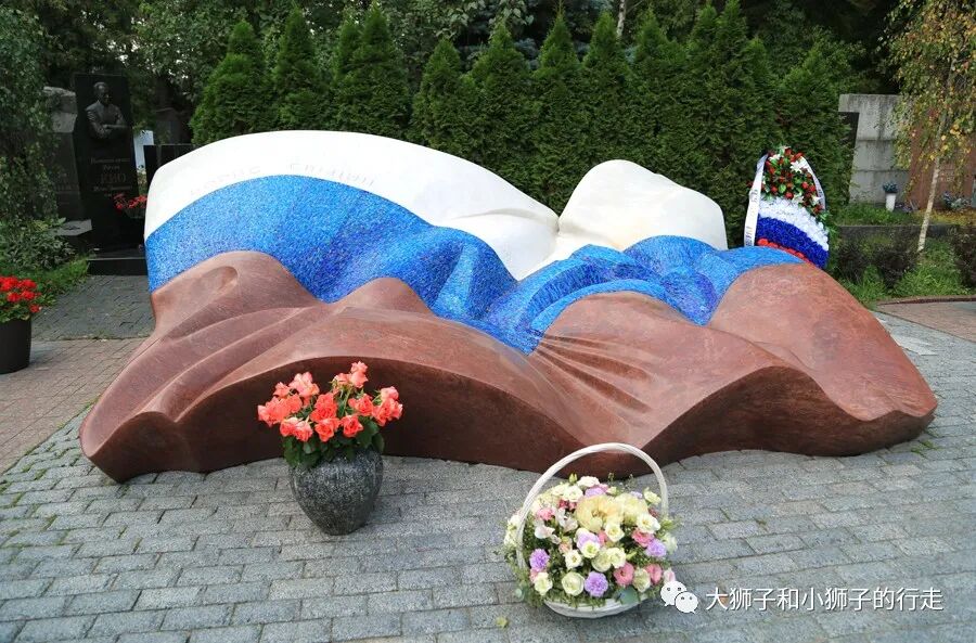 比如叶利钦的墓碑,就是俄罗斯的三色旗。