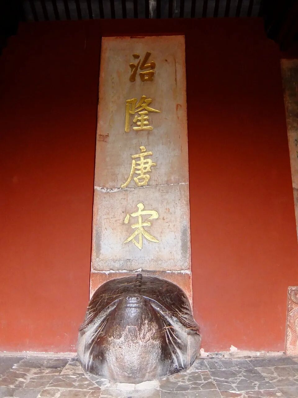 ▲清代康熙皇帝为了笼络人心,为明孝陵御题“治隆唐宋”碑