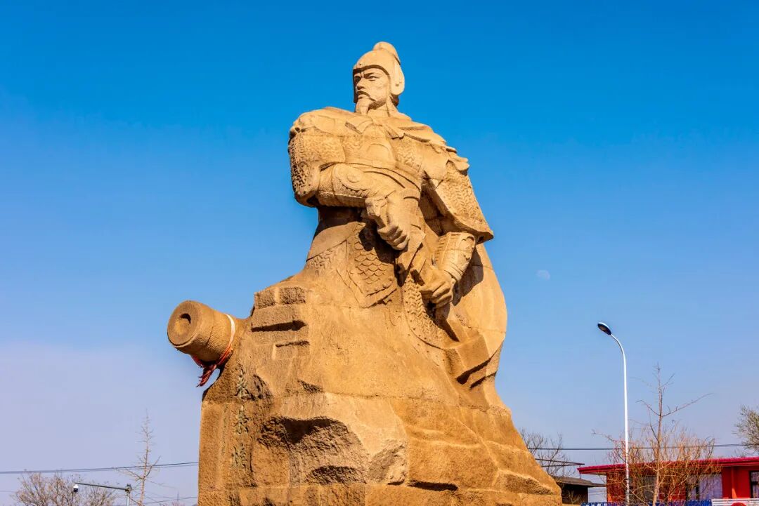 ▲辽宁葫芦岛兴城袁崇焕像,人像旁雕有一门红夷大炮。图源/图虫创意