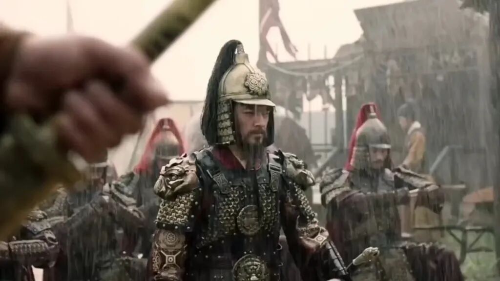 ▲跪在雨中苦劝明英宗移驾的明军将领。图源:影视剧截图