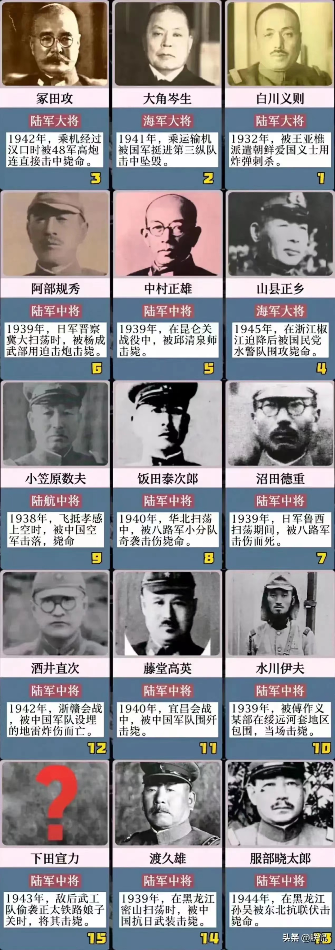 日军中将巡查,突然砰一声,脸上血流如注,伸手一摸,一只眼球不见了。再回头一看,陆军大将白川义则被炸飞数十米!