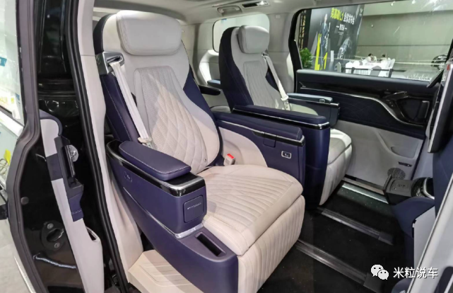 参展的这款车型使用的是四座设计,第二排配备了两个航空座椅,配备了腿托,加热,通风和摩功能。此外,也搭载了全景天窗以及双层隔音玻璃。