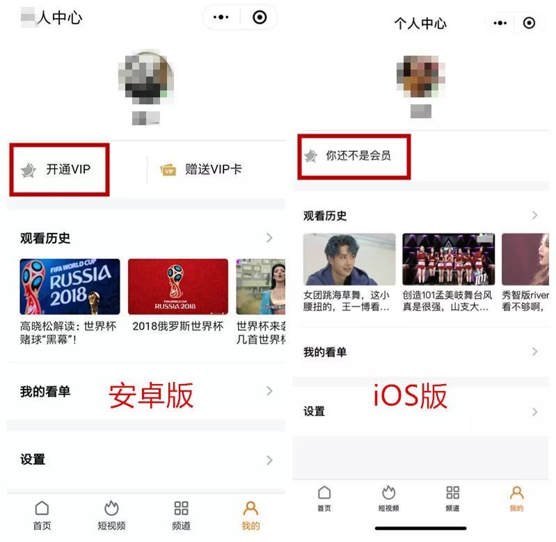 以小程序【腾讯视频】为例,iOS端关闭会员卡开通渠道,原【开通VIP】按钮,现仅显示【你还不是会员】,不再提供会员开通服务。比如: