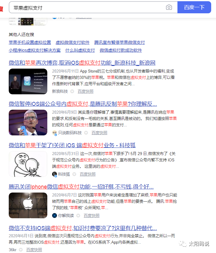 因为苹果出台了一个新政策,针对虚拟支付会收取30%的费用,意思是你用苹果手机在小程序里置顶了一个信息10元,而苹果扣走了3元,微信还要扣0.6%,作为小程序运营方不知情肯定先找微信支付。微信说我也没得到啊?而且大家都不干,索性你们就不要支持苹果的来嘛。