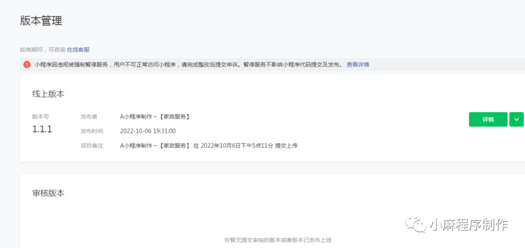 小程序上线5年了,现在管理越来越严格,越来越规范,门槛也越高了。很多小程序不注意就被暂停服务,永久关闭了 !