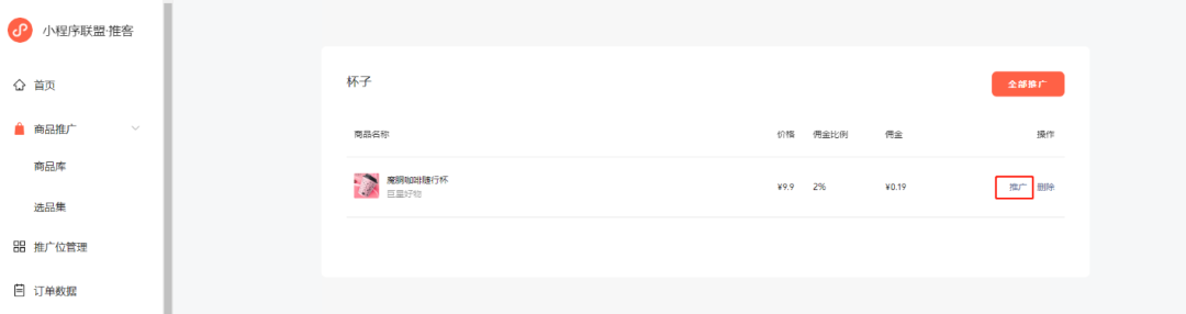 小程序联盟推客端,主要是提供给没有货源但是有一定流量的企业及个体户进行带货赚取佣金,推客可以直接在小程序联盟进行选品及分销,设置分销员绑定ID等,下面给大家详细介绍下操作步骤。
