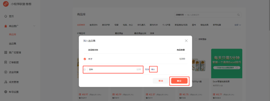 3、点击商品图片可预览商品详情,选择好商品后,点击【加入选品集】,设置好选品集名称,即可将商品加入到选品集,点击选品集即可看到自己加入的商品