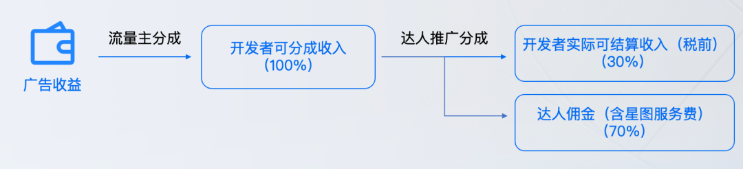 结算规则:将达人推广引导用户进入小程序后产生的广告收益可分成部分以固定比例分成