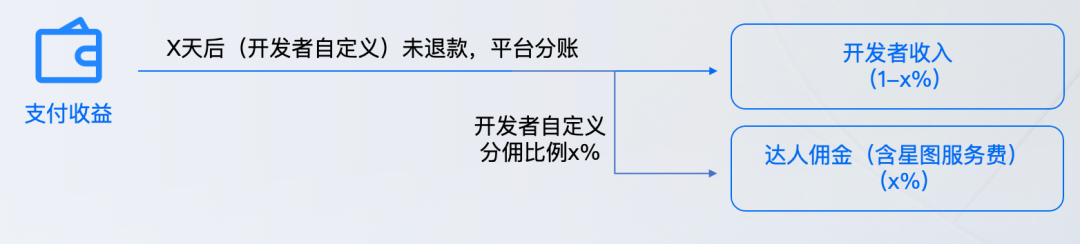 结算规则:将达人推广引导用户进入小程序后产生的x天未退款支付收益以开发者自定义比例分成