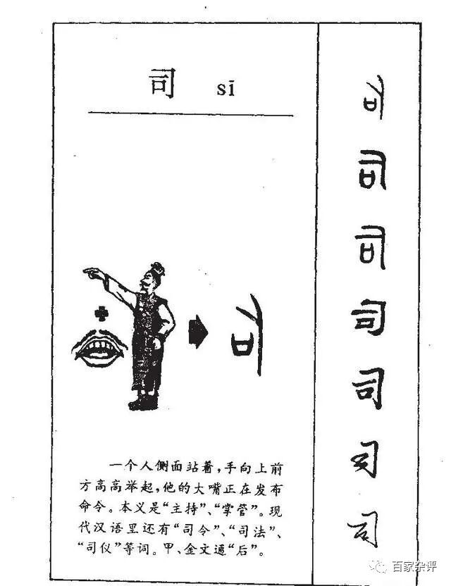 甲骨文中的后字,由“人”与“口”组成,大概相当于一个人正在发号施令,与“司”字字形(见下图)恰好相反。