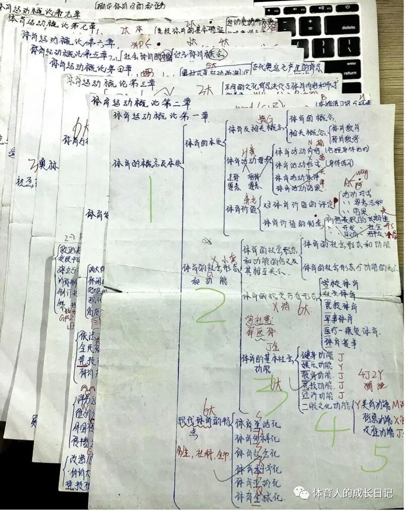 关于专业课的背诵,我做了一份背诵计划表:十个周背完第一轮。每周安排:体育社会学15章,那么每周底线是背诵完1章,状态好的话就背诵2章;体育运动概论10章,那么每周背诵1章即可;体育管理学以此类推。背诵方法:第一天背诵过的内容,第二天应复盘背诵后再开始背诵当天的新内容。通过叠罗汉(类似艾斯浩宾遗忘曲线)的记忆方法来反复巩固加深记忆(虽然这种方法需要背诵的内容会很多煎熬,但不失为一种构建专业课框架体系的好方法)。