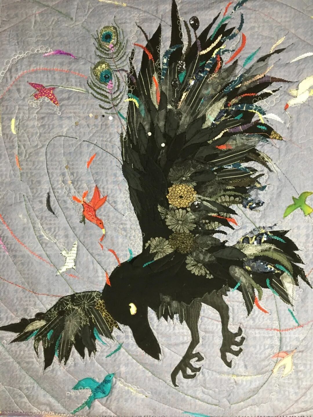 Soon the young jackdaw was surrounded by birds pecking at his beautiful costume. They pulled away their lovely coloured feathers until his costume had all gone.