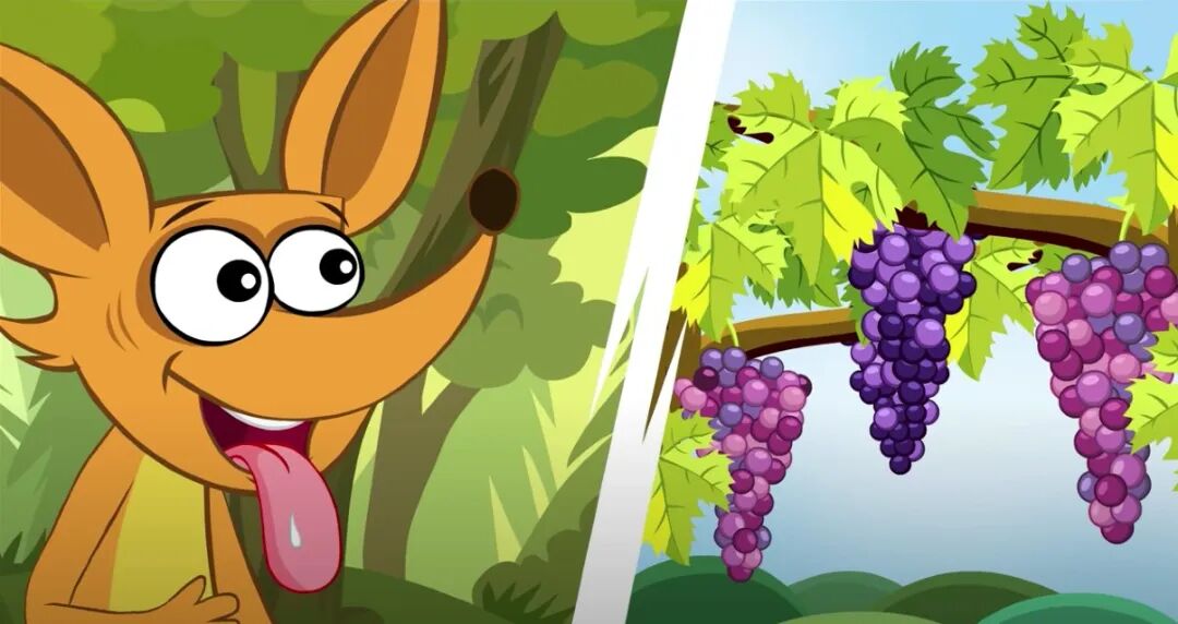 'Haaa well!' he said to himself. 'The grapes don’t look that juicy and I just know they will be as bitter as lemons. Phooey! Who wants to eat sour grapes!'