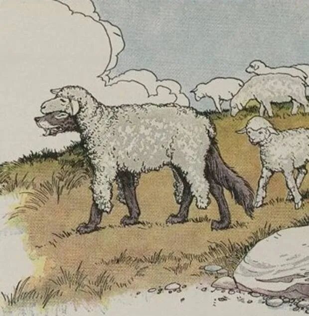 Excellent work, said Farmer Foggarty to his sheep, we fooled that wily Mr Wolf! Now I’m off to have my egg and chips!