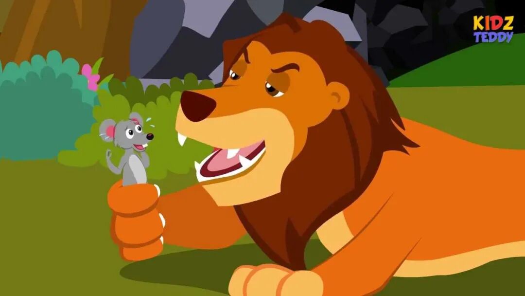 A Mouse was scurrying through the forest when he saw a Lion sleeping under a tree. The Mouse stopped and said to the Lion. ‘You may be very big but I’m not scared of you.’