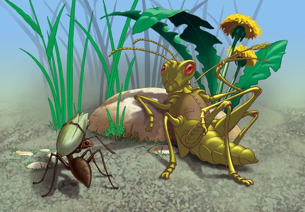 ‘Don’t go Ant, mate,’ said the Grasshopper. ‘Stick around. Pass the day with me.’