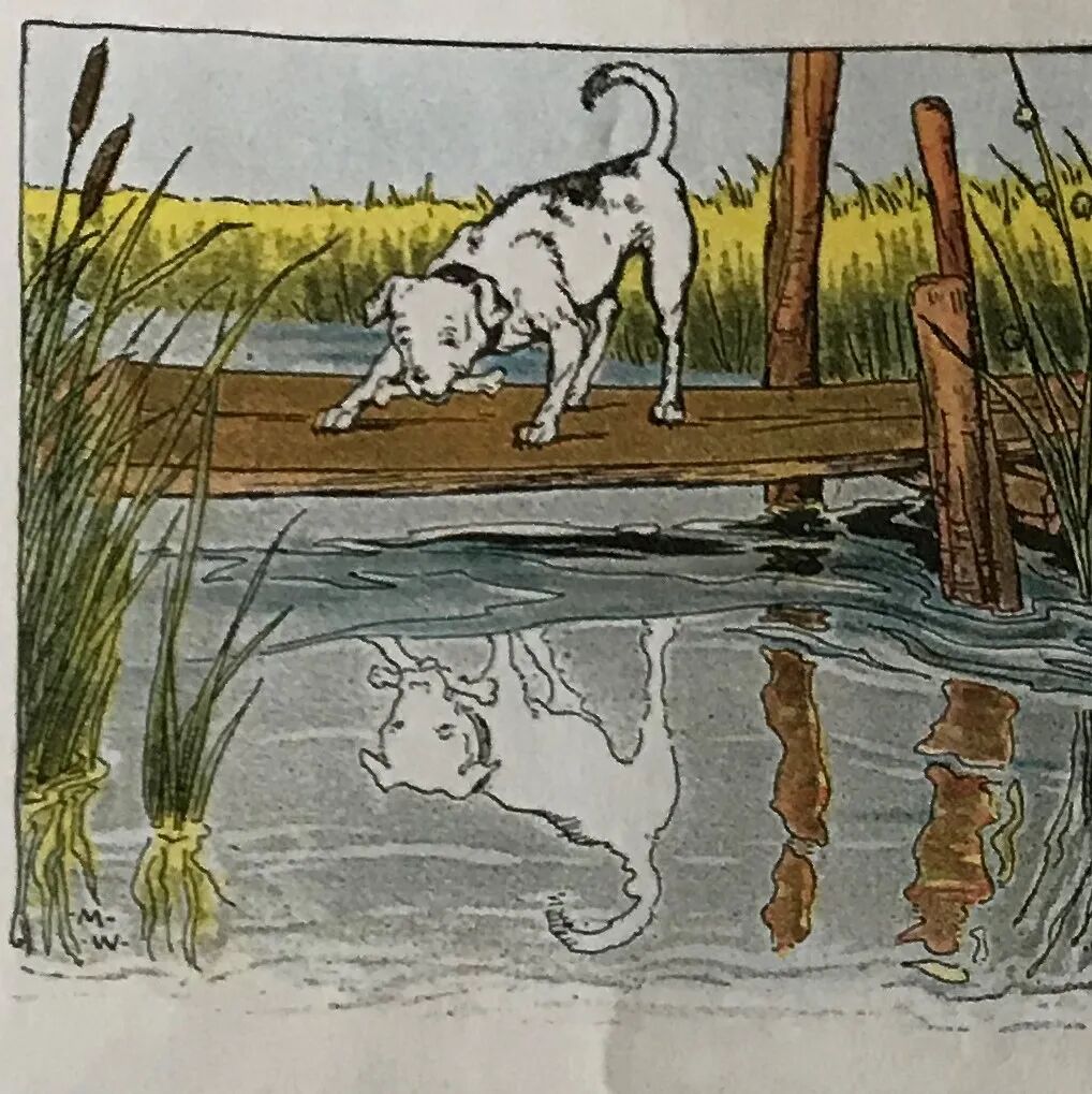 Below him in the still water was another dog. A big fierce ugly dog - and this dog had a bone with all the meat on too!
