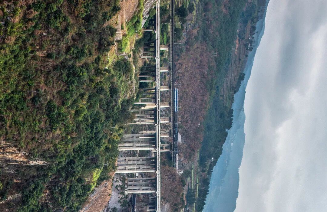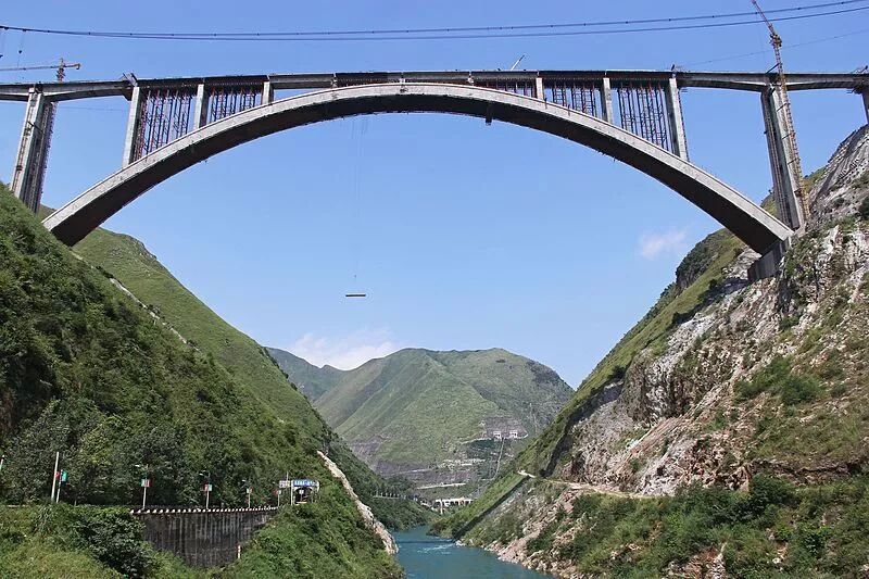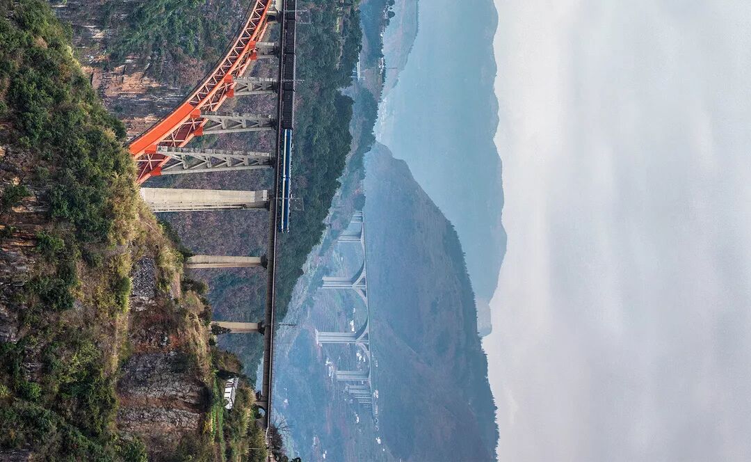 北盘江特大桥是沪昆高铁建设中响当当的超级工程之一,位于贵州省关岭县与晴隆县交界处,大桥以一跨形式跨北盘江而过,距江面高约300米,全长达721.25米,其中主桥445米的跨度在目前世界同类型铁路拱桥中跨度是最大的。正是这些先进的工程技术,使得贵州的崇山峻岭不再是制约人们出行的拦路虎。