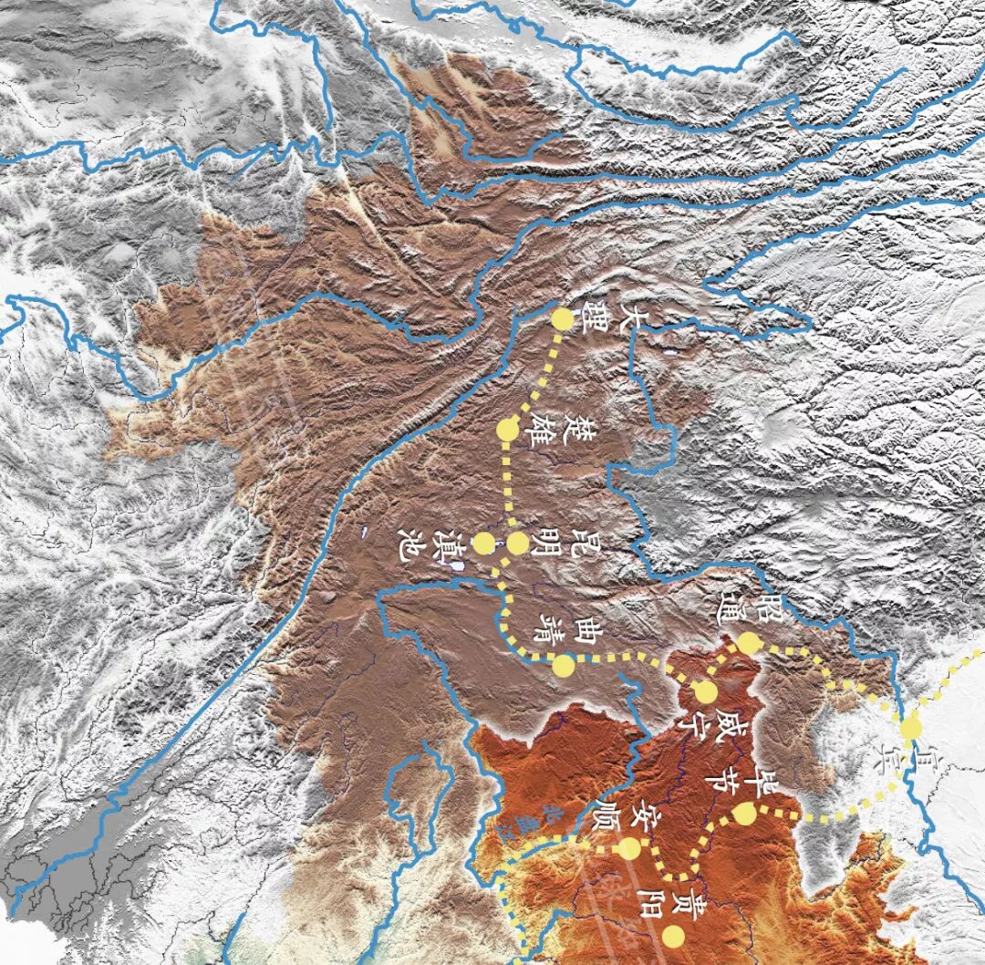 元朝时,贵州的对外交通得到了进一步的改善,云南昆明经贵州普安到贵州黄平的道路得以开辟。而到达黄平、镇远后,经洞庭湖水系的沅江水道,便可到达湖北江陵,这条道路又被称为滇黔湘驿道。