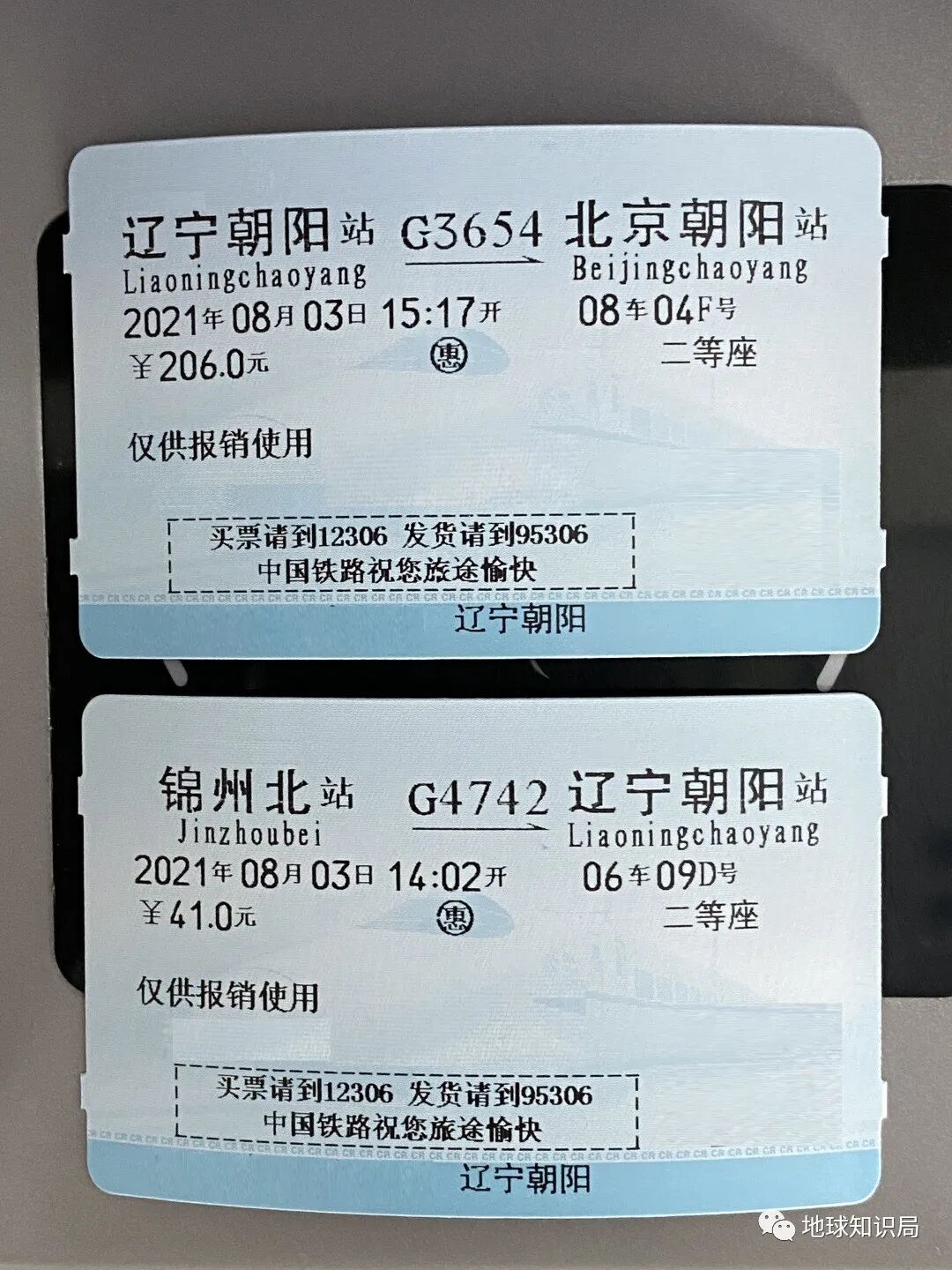 朝凌高铁首发当日的车票(报销凭证)
