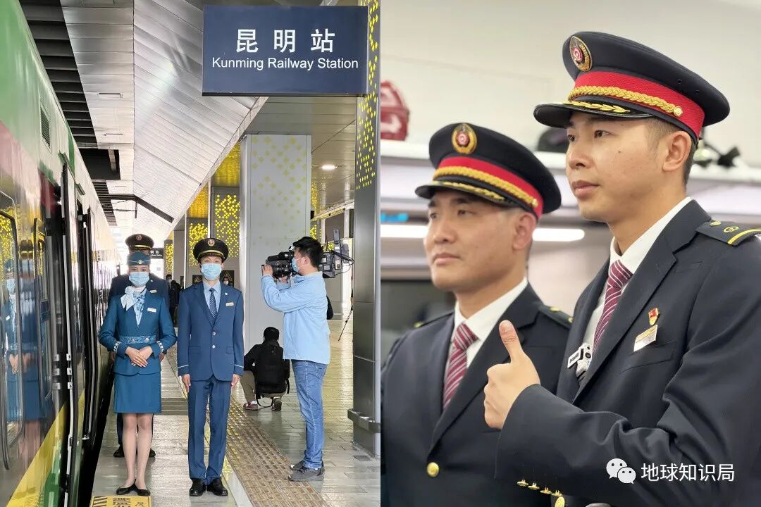 右:中老铁路首发列车司机(右)(图:杔格)▼