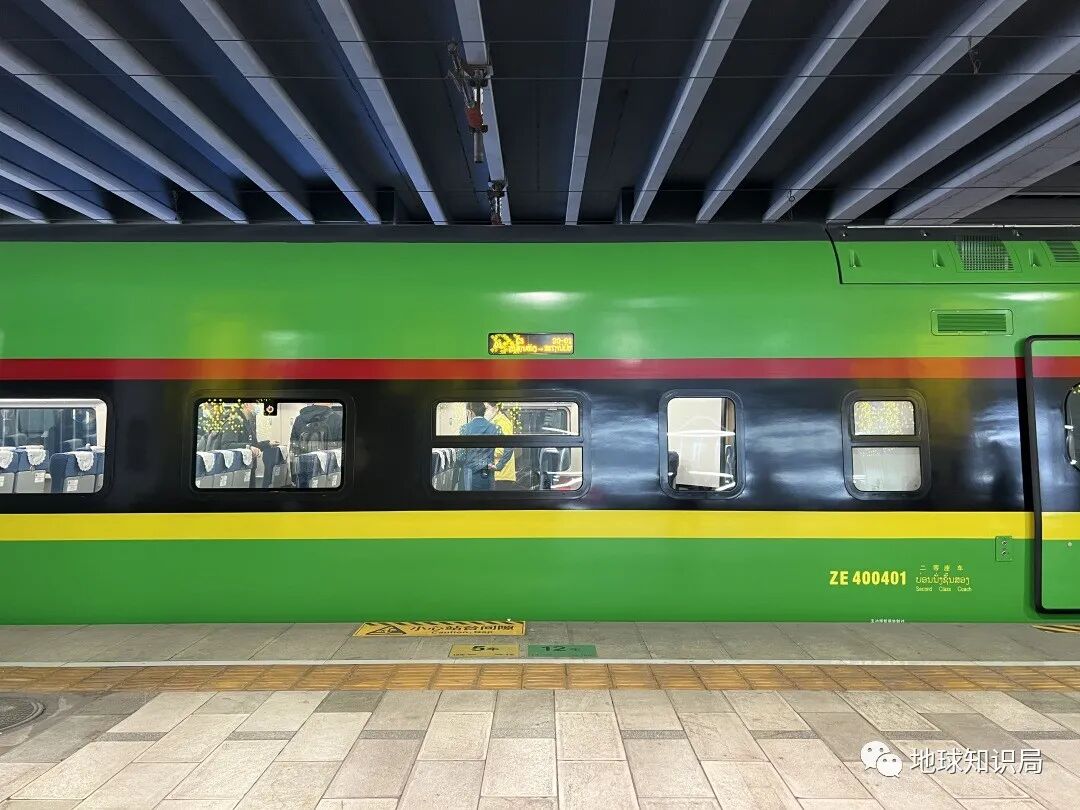 在全线新建最大客运站——万象站,飞驰于磨万段的“澜沧号”、“老挝芦笙号”动车组,车体外观采用老挝国旗色红、蓝、白三色涂装。