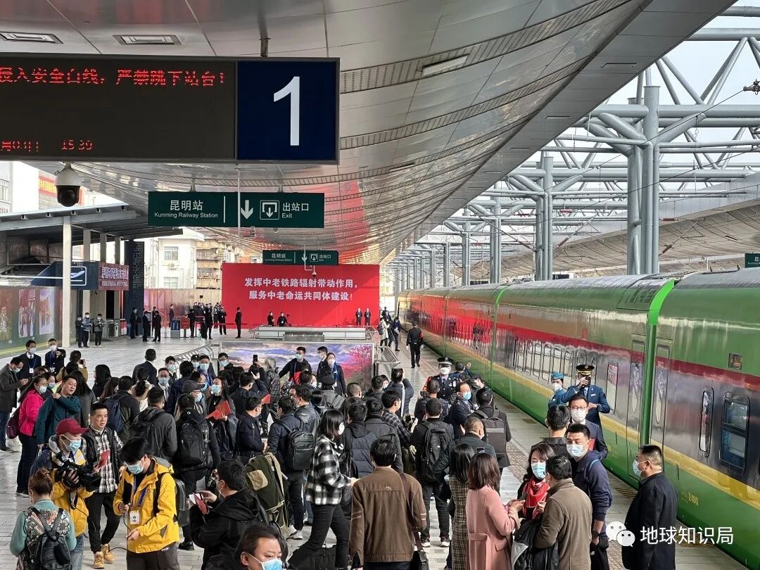 2021年12月3日16时44分许,中老两国元首下达发车指令。随后,首发复兴号、“澜沧号”列车分别从昆明站、万象站同时驶出。标志着连接中国昆明与老挝万象的中老昆万铁路正式全线开通运营。