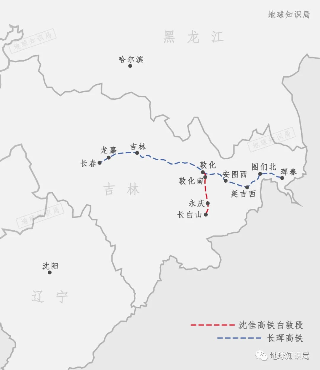 沈佳高铁白敦段,基本呈南北走向,南起长白山站,途经永庆站,北至敦化南站,正线全长99公里,设计时速250公里;敦化南站至敦化站新建联络线,线路长12公里,在敦化站接入长珲高铁。
