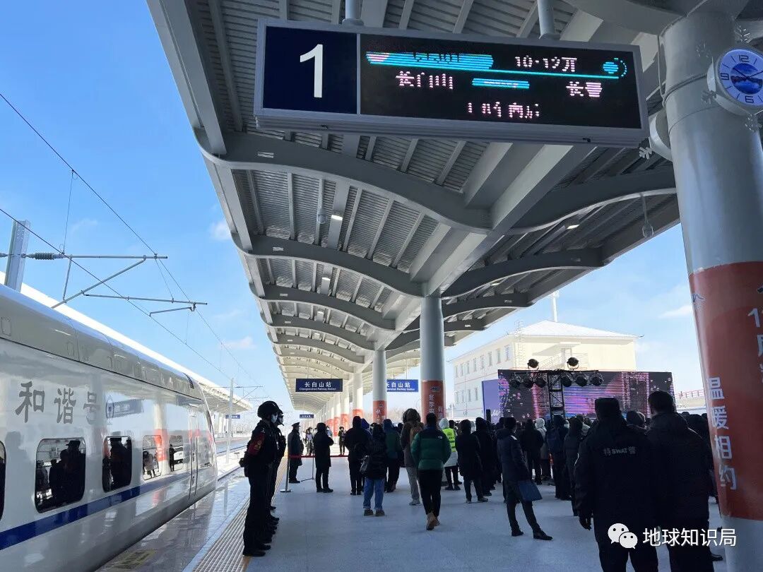 2021年12月24日7时35分,随着G9127次列车缓缓驶离长春站,向着“森林中的高铁站”——长白山站疾驰而去,标志着沈阳至佳木斯高速铁路长白山至敦化段(沈佳高铁白敦段),正式开通运营。