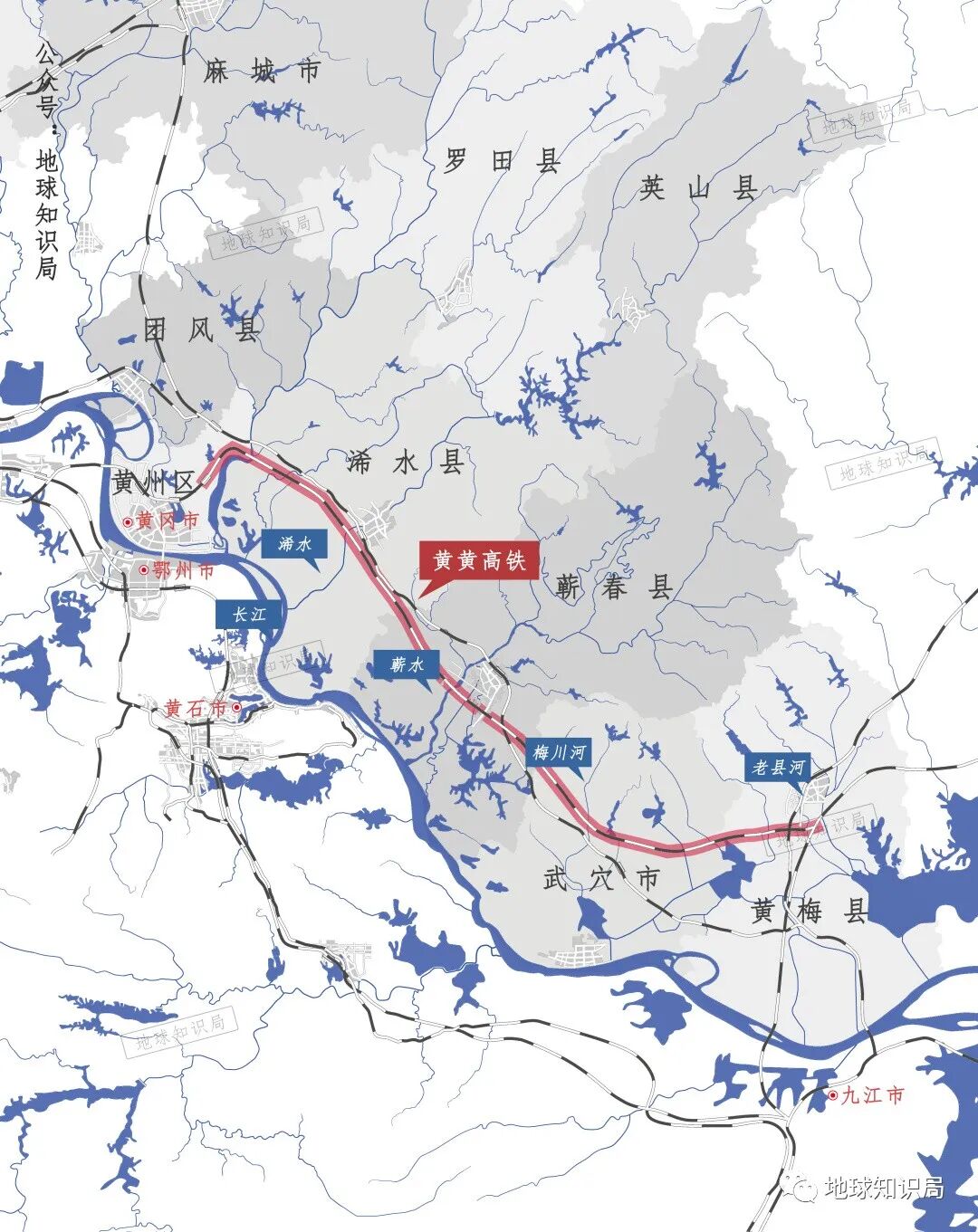这意味着作为鄂东南门户的黄梅县,虽然全境均在湖北省黄冈市境内,但是辖境内的高铁线路,分别所属武汉、上海、南昌三个铁路局集团公司。