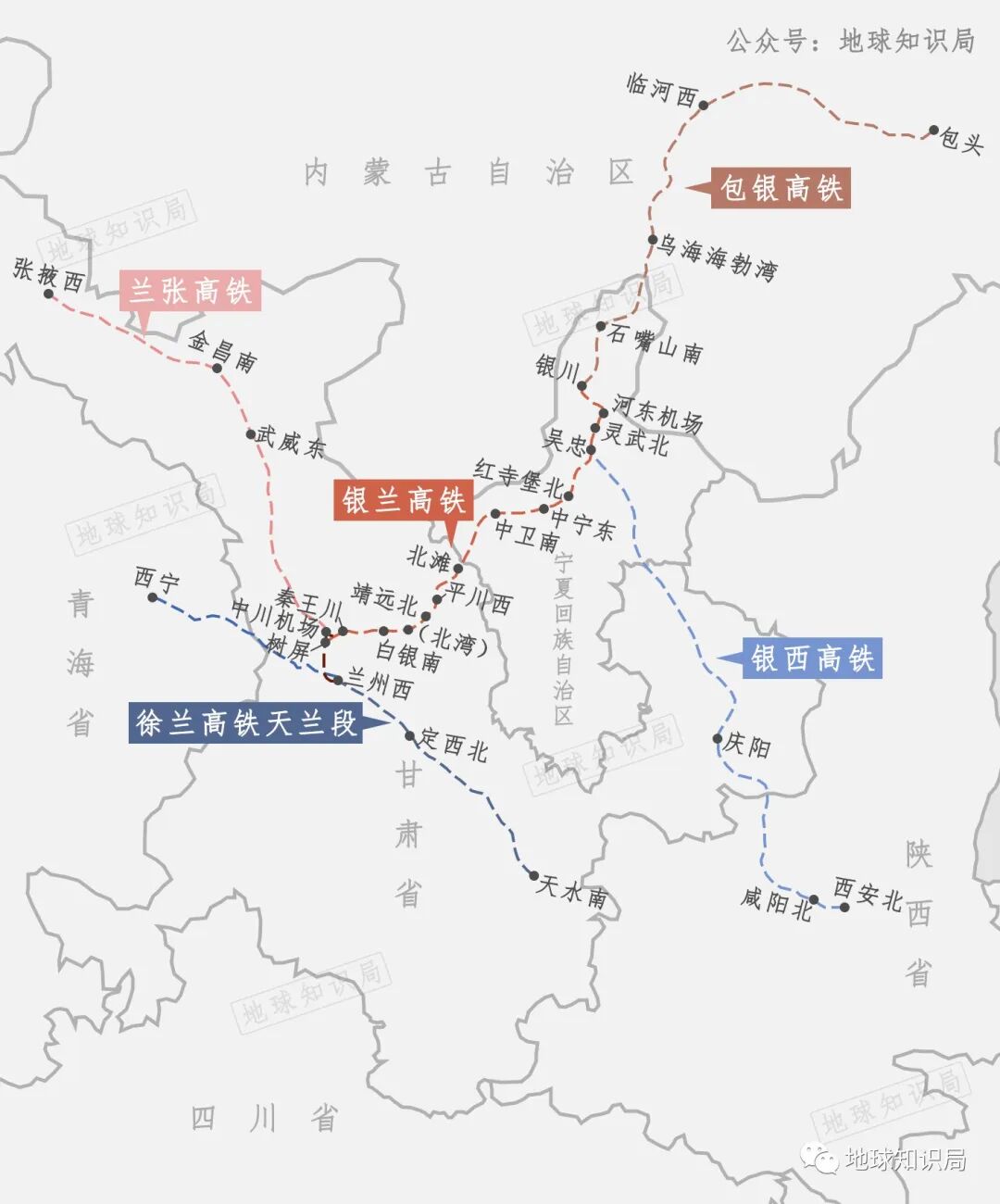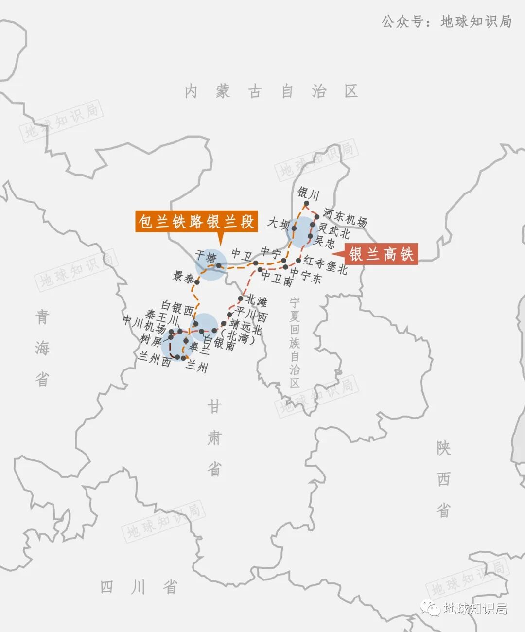 3.普铁经行白银市景泰县和白银区(主城区),高铁经行白银市靖远县、平川区和白银区(主城区);