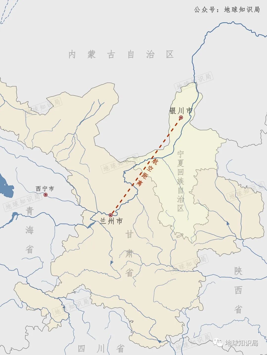 宁夏和甘肃是两个毗邻省份,然而银川和兰州主城区之间,如果测算航空距离,所经过的省份数并不是两个,而是三个,还包括内蒙古自治区。