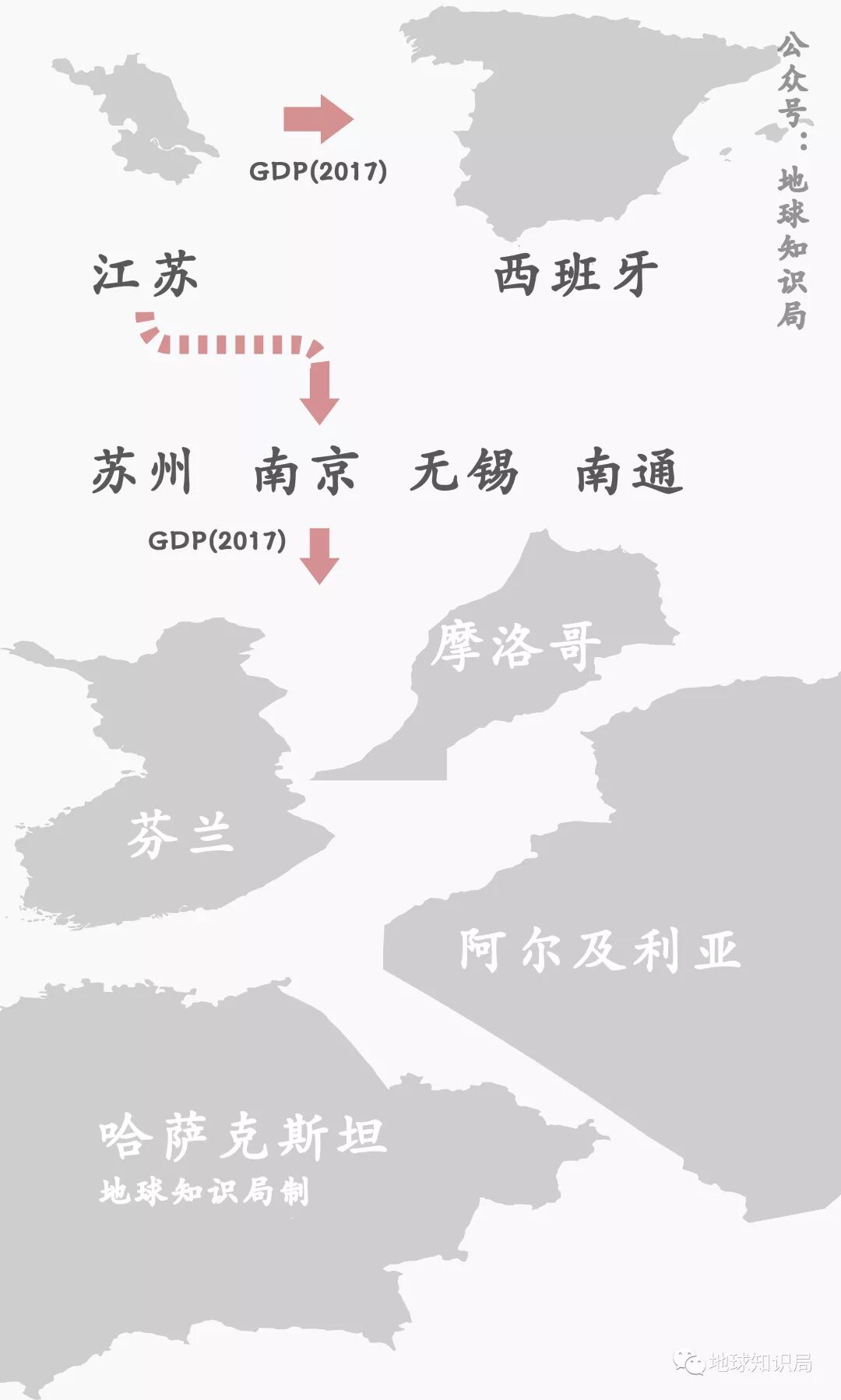 今天从各省经济体量的比较来看,江苏一直位于三甲行列,GDP与西班牙相当;比较各地级市的经济体量,江苏有4座城市(苏州、南京、无锡、南通)进入全国前二十强。