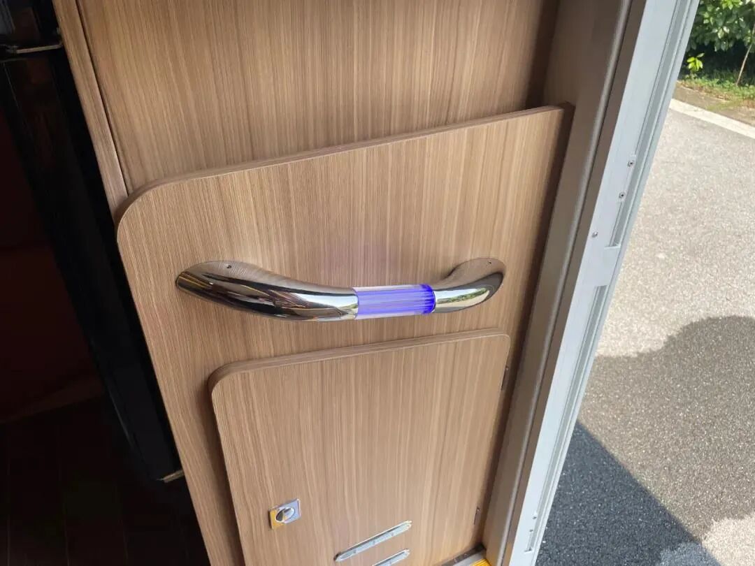 乘客主门右手的位置设有发光扶手方便上下车;扶手下方是储物柜,增加收纳空间;