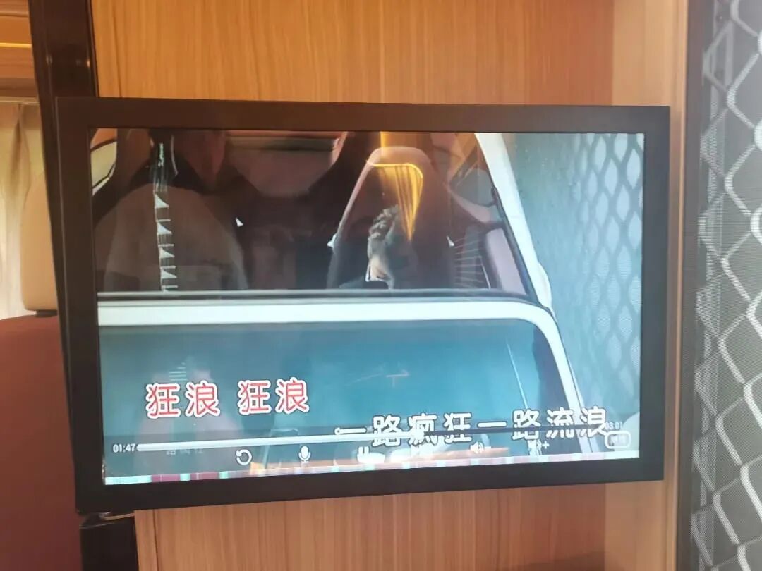 扶手上方搭载21寸液晶电视,配备卡拉OK系统,搭配车内专业级车载音响,随时随地享受全方位的视听娱乐体验;