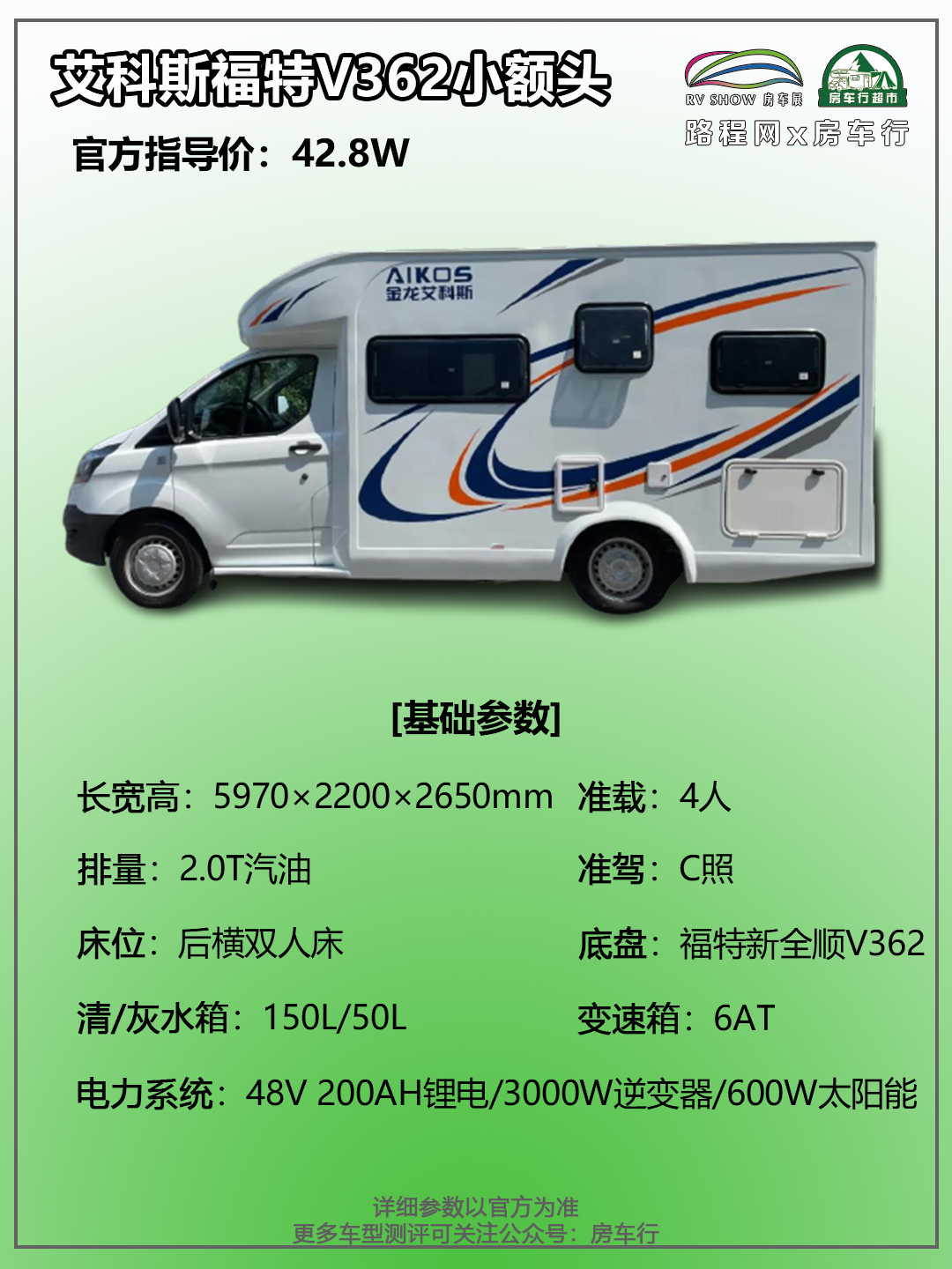 目前,金龙艾科斯福特V362 T型房车的官方指导价格为42.8W;总体看下来,这款车虽不像别的车一样拥有多张床铺,但却换来了更加舒适的双人世界,对于出行人数不多的车友来说不失为一种好选择;那么你呢?你会选择开上它,带上爱人一起,共度浪漫房车之旅吗?