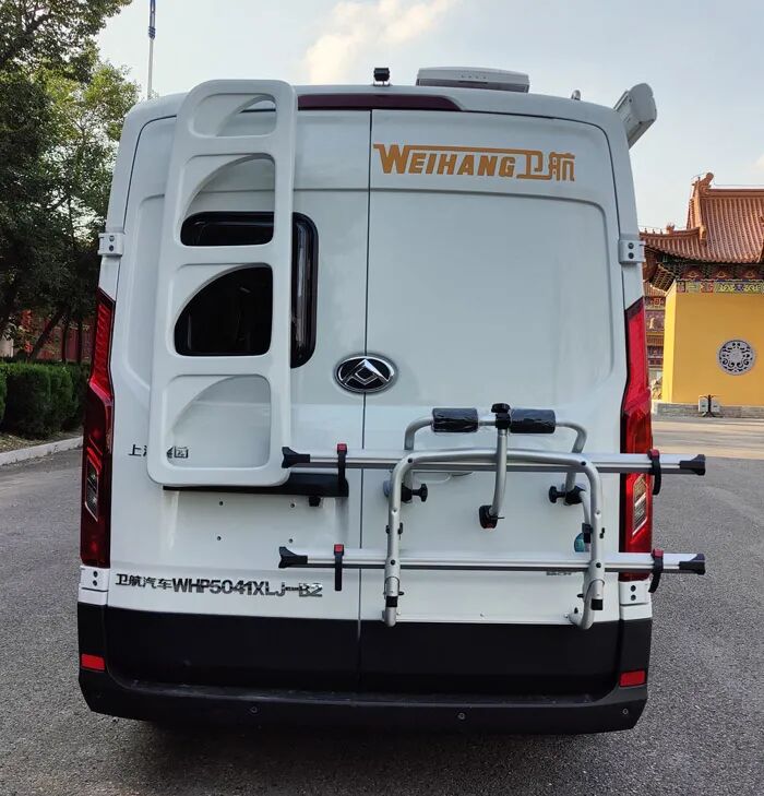 卫航WHP5041XLJ-B2房车基于上汽大通底盘打造,有多种外观选装图案可供选择,还可根据个人需求选装遮阳棚、车顶空调、换气扇、天窗、选装爬梯、备胎厨房、拖车杠、推拉侧窗户、前雾灯等设施;车体内部按旅居卧室布置,配备卧具、厨具、卫生设施等专用装置;可选装直接供电的ETC车载终端。
