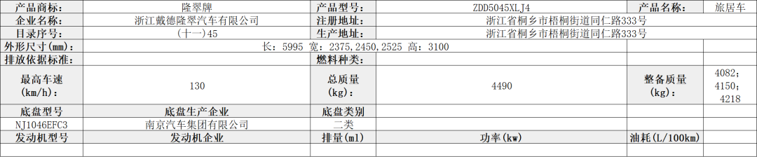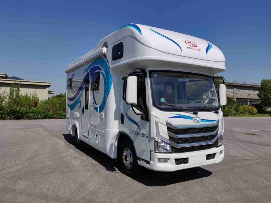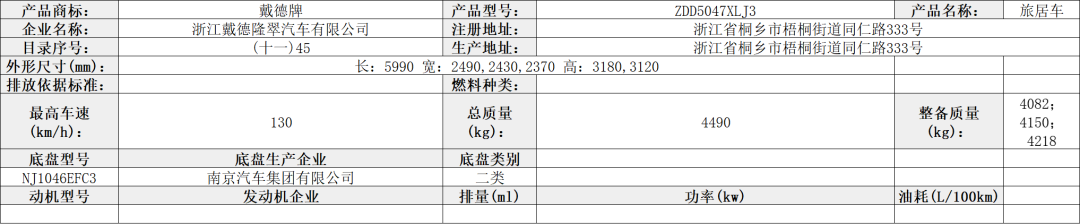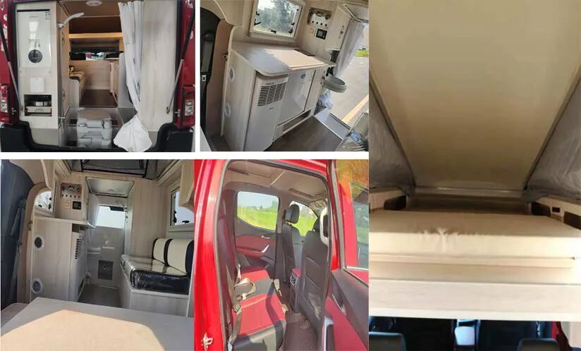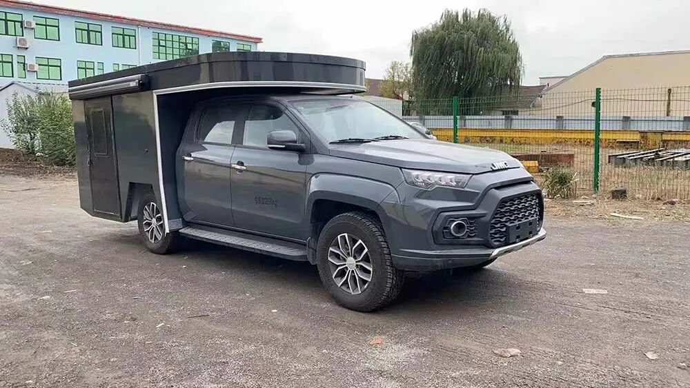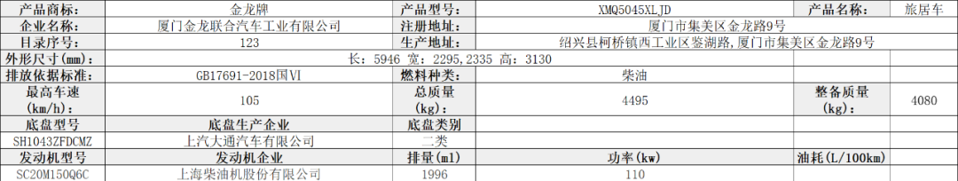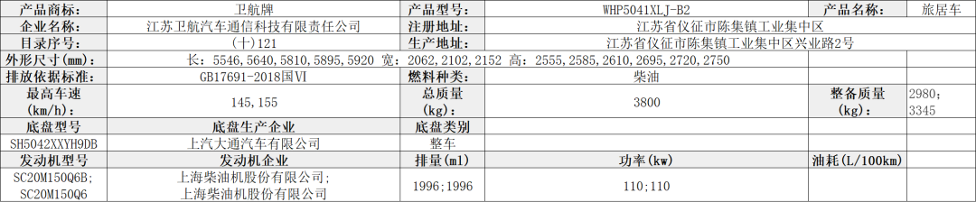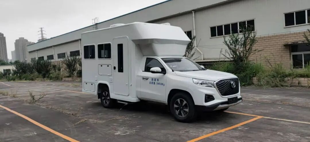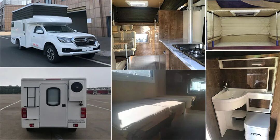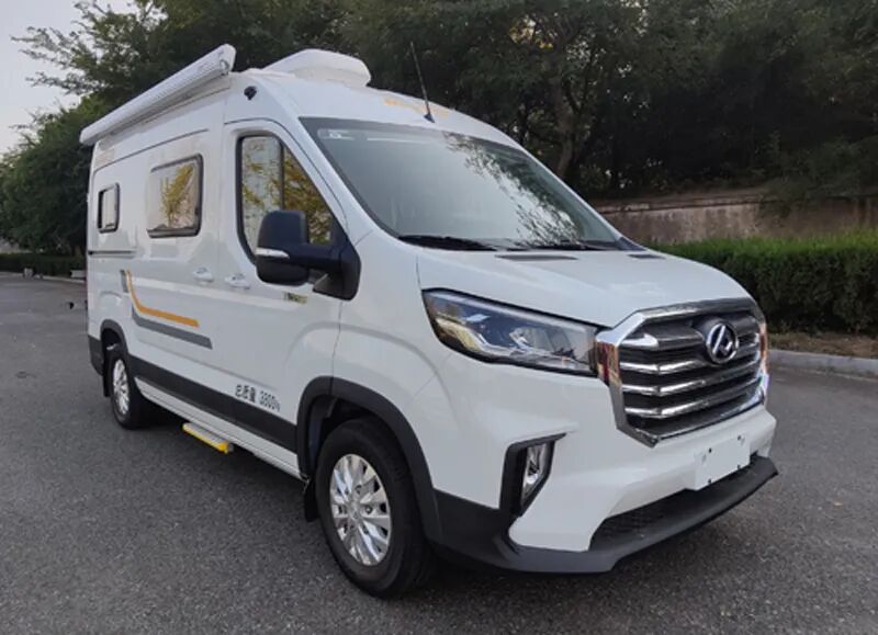 该车型基于上汽大通底盘打造,内部设有桌椅、睡具、卫生设施等,可满足日常旅行的生活需求;车侧后防护为裙边结构,侧防护离地高度为315mm,后防护离地高度为435mm,选装右侧遮阳蓬时对应整车宽度2335mm;发动机最大净功率108.5k,可选装直接供电式ETC车载装置。