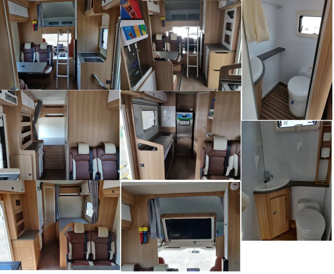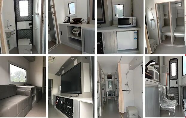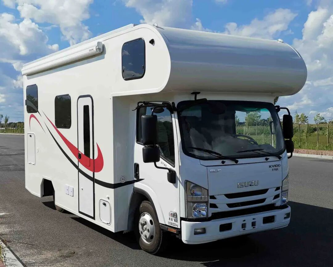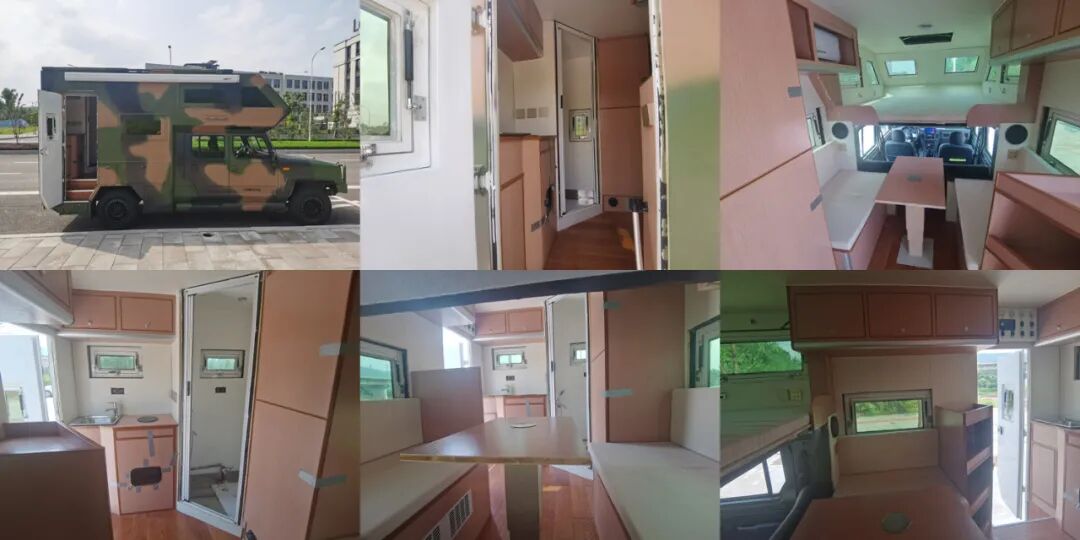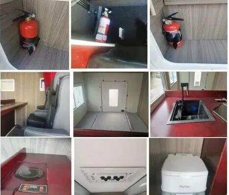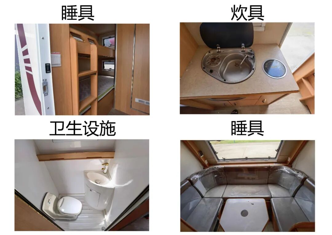 1、该车配备冰箱、厨具、卧具,卫生设施和旅居设施等专用装置;2、车身侧面选装新款侧面造型、侧拓展箱体、遮阳篷、车窗、舱门、马桶舱门、野餐桌板、车门、空调散热口、侧面贴花、自行车架固定件、爬梯、方口、加水口及上车把手。