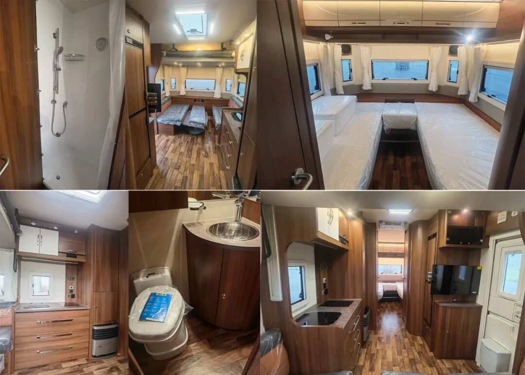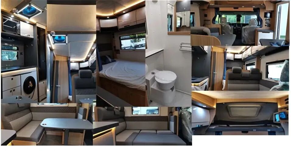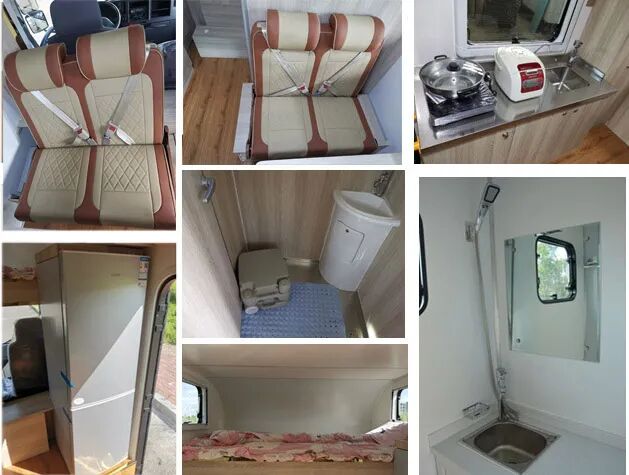 该车设有沙发、衣柜、燃气燃油炊具、电炊具、油烟机、发电机、厨具、卧具、卫生间洗浴设施等旅居用途的专用装置。两侧可选装外推窗,选装后部开窗,选装侧面车窗和客舱门不同数量及安装位置,选装不同额头配置、额头天窗,圆弧车顶 ,太阳能电池板。