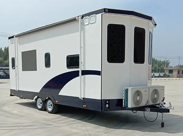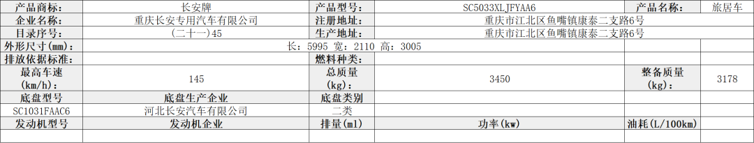 该车为非乘用车,行驶过程中不载人,牵引杆连接器最大负荷150kg,牵引杆深入量为60mm;顶部封闭,不可开启;车厢内配备床铺,沙发桌椅,炊具,卫生及娱乐设施等旅居用途的专用设备;车身右侧可选装取消外置插座、外置水口、外置翻折桌板、外置燃气口;可选装侧舱门、移车器,选装取消外置摄像头、取消后侧窗、前侧窗、取消排气口、选装不同样式排气口。