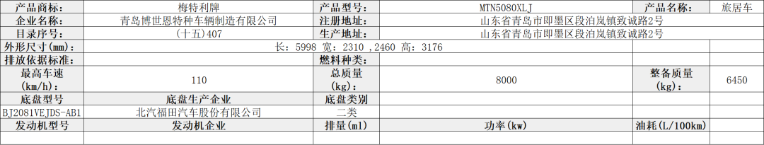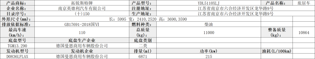 1.本车型装备桌椅、睡具、卫生设施、厨房设施等,用于宿营旅居;2.ABS型号:MGH-100,生产企业:万都底盘部 件(苏州)有限公司。3.发动机最大净功率150KW。4.选装ETC。
