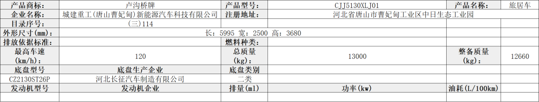 车内设有桌椅,睡具,卫生设施等旅居生活设施,用于人员宿营;侧防护为裙边结构,材质为45号碳素结构钢材料,后防护材质为45号碳素结构钢,连接方式为焊接连接;发动机的最大净功率为215kW。该车型可选装ETC车载装置。