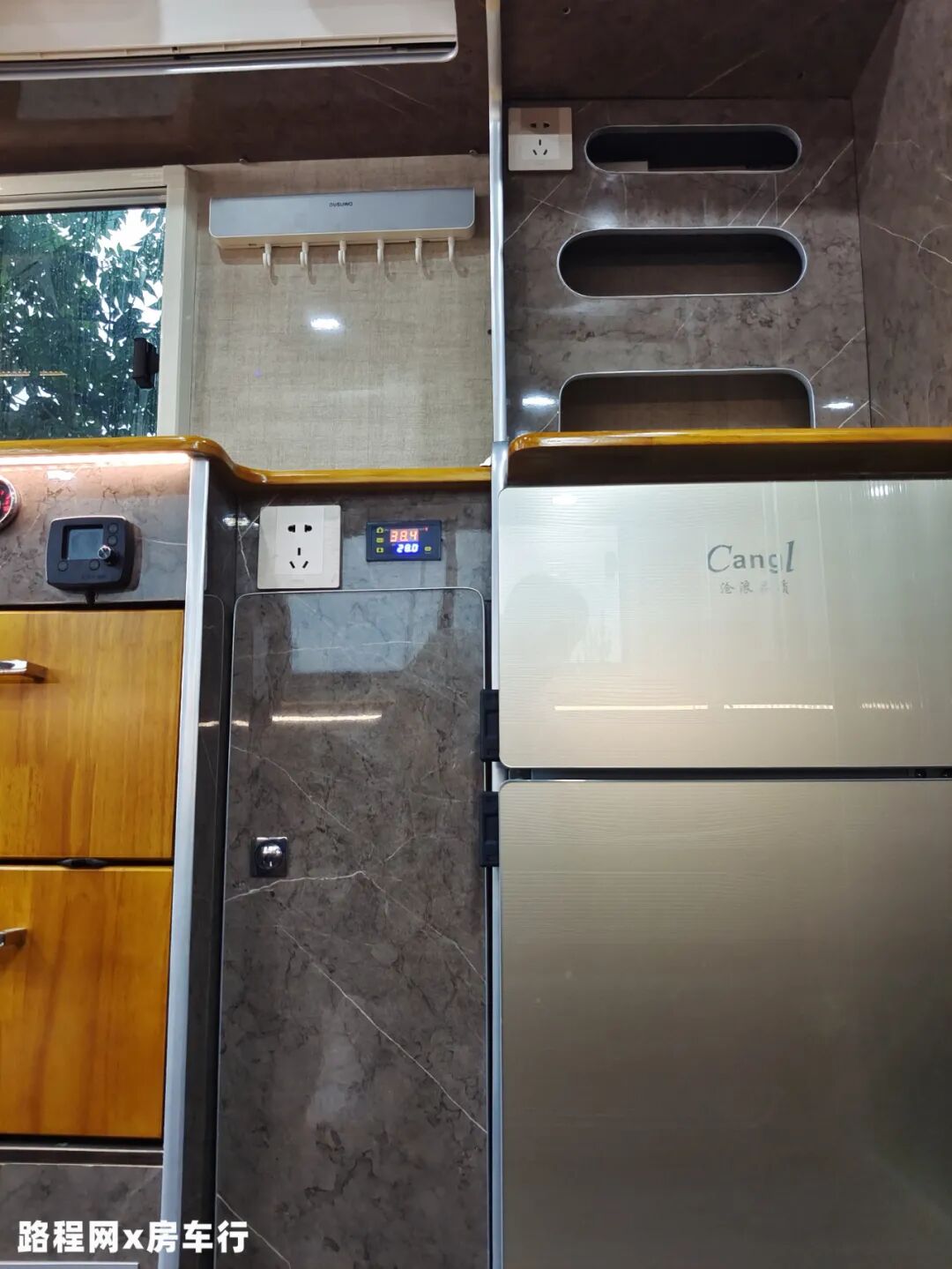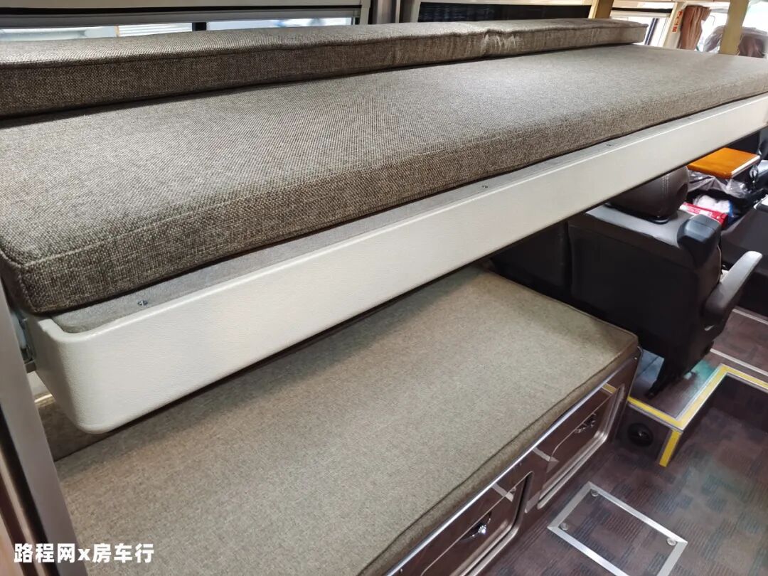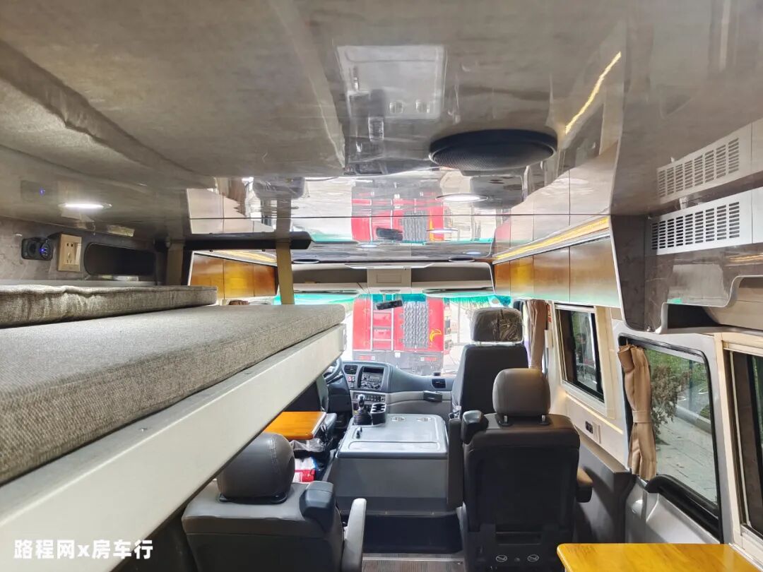为减少车内做饭油烟泛滥的问题,这款车把厨房区分为两个部分,一体式橱柜位于外部,超大的操作台面满足你大展身手的需求,做饭时也不用因面积不够而畏手畏脚;烹饪区则在尾部,与生活舱分隔开来;