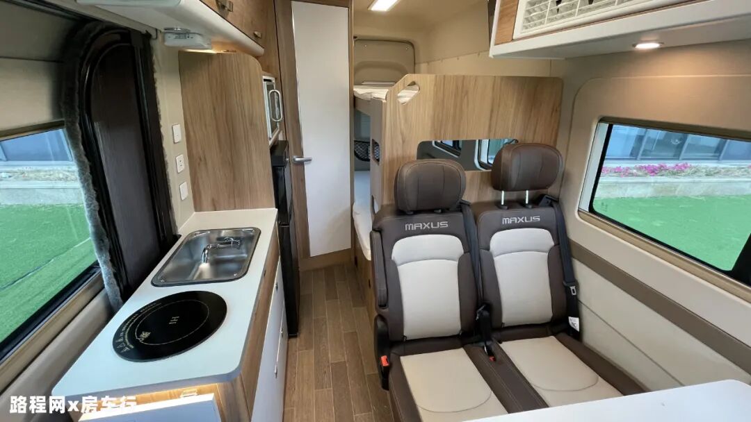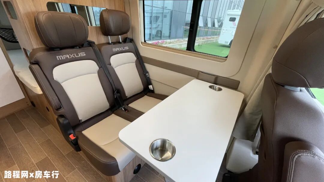 纵床版的会客区设有双人座椅(横床版为双人座椅+单人座椅),带有三点式安全带、扶手便于行车时载人,更有ISOFIX儿童座椅安装点;